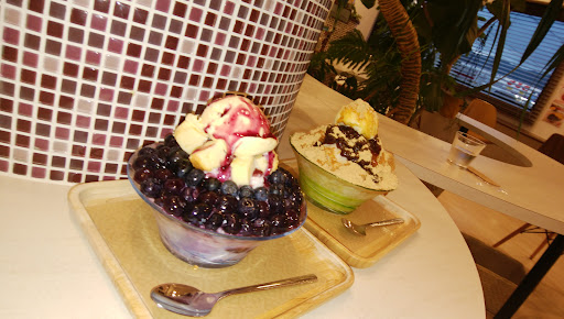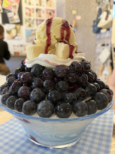 Read more平日の14時頃訪問。駐車場が、お店を左手に見て、次の角(信号ではありません)を左折。付きあたりのマンションの右手奥に61から68と5?がフラットの駐車場。旗が立っています。駐車場の案内はお店の前に掲示してあります。 かき氷はブルーベリーチーズケーキとキウイ🥝 上にバニラアイスが乗っていて、その下にチーズケーキダイスがある。生クリームの下は生ブルーベリーがドレスのように敷き詰めてある。かき氷は粉雪のようなふわっとサクッとした食感。かき氷自体に味がついている。 甘い蜜がかかっているわけではないので、あっさりとして後味がとても良く 最後まで美味しく完食。 店内は可愛らしくポップな内装で清潔感がある。雑貨やレノファ関連のグッズなども売っている。お水はセルフサービス。 ...