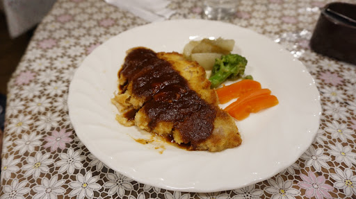 初めて入店された方は、玄関をはいると、すこし戸惑われるかもしれません。靴を脱いだあと、どこに行けばいいか迷うからです。しばらくしたら店主が案内をしてくれました。奥にある蔵に案内されました。雨降りの中の来店のせいか、店内は自分ひとり。クラシカルな蔵の中は別世界にいざなわれたようでした。メニューを開くと店主の几帳面で美しい手書きの文字に感動を覚えます。お若いころ、調理についてきっちり仕込んでもらったのでしょう。お手頃な値段にもかかわらず、いっさい妥協なしの『西洋料理』が提供されます。食後店主に聞けば、ご常連は徒歩でいらっしゃる方がほとんど、ということですから、玄関で靴を脱いだらどこへ行ったらいいか不明朗でも、それが落ち度にはならないくらい、地元の地域の住民から愛されているお店なのでしょう。得意料理はお肉だそうです。今回は魚のムニエルにしましたが次回は店主イチオシの肉料理を食べてみようと思います。車で来店する場合は、一方通行の道をはしり、駐車場は店舗脇の壁面に横づけで停めます。とくに駐車場の案内看板もないようなのと、店の前が一方通行の道なので、そろそろ到着かな?となったら、周囲の道路状況に気配りされたらよろしいかと老婆心ながら思いました。なお、店を通過したあとにでてくる広場は別の会社の敷地のようですので、そちらには停めないほうが...