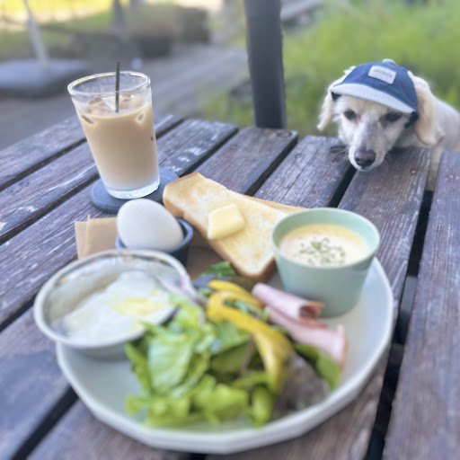 オーダーは、QRコードで読み取る方式、カウンターでもオーダー受け付けてくれます。 私は,数日前から始まったと言うモーニングプレートとアイスカフェラテ、デザートに桃のパフェを頂きました。 モーニングプレートは、バタートーストに温かい野菜スープ、山中湖ハム・ゆで卵や葉物野菜・ヨーグルトと盛り沢山。野菜スープは熱くてコクがあって具が粗めにあって美味。山中湖ハムは肉肉しい感じだし、甘さを感じるバタートーストとの相性も良かったです。ハチミツかな?少し入ったヨーグルトや、ゆで卵でお腹がしっかり満たされます。また、桃の在庫があとひとつだったのに、作ってくださったパフェは、小ぶりの柔らかくてみずみずしい甘さの桃を使ったもので、アイスやジュレ・クッキーなどが入っていて、桃をしっかり味わえました。