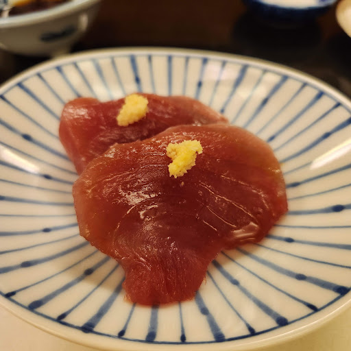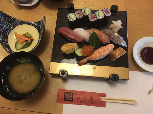 Wow this place is a hidden gem! We stayed at the Fruit Park Fujiya Hotel and this place was a recommendation by the front desk, pretty close and open late.. came upon it by chance and it was a WOW meal! We sat at the sushi bar and had the Omakase (chef’s choice of what is currently the freshest) ..first time we ever tried it and this place was the BEST! First of all the service was over the top, gave you a blanket when you sat down and the baskets for your things, the lady who greeted us was the granddaughter of the original owner and her son was the sushi chef! (4th generation sushi restaurant open for 97 years!) my mom in law translated a lot of things but the sushi chef showed us the pictures of the fish and described some of them as well! So cool! Can’t say enough how delicious the food was, the Uni was the best I’ve ever had, and the fish was unique and prepared in the most delicious ways! The wasabi was grated in front of us and the kani/nori (crab/seaweed) chawan mushi was unique and amazing. Suuuuper friendly service and just the best food! Last thing I’m going to say is my sister doesn’t really eat raw fish too often, but the way that everything was prepared was special and just the right taste. An unforgettable meal and we are so glad to have met...