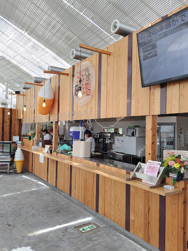 スタッフは4,5人。年齢高め。 注文はセルフレジで、呼び出し番号呼んでもらってカウンターに取りに行くスタイル。 ソフトクリーム、パフェ、かき氷、お酒などと時間がかかるものでも無いため、みなさんカウンター付近で待機。