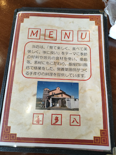 Read more本来は四川料理の店のようですが、地域に根ざした山梨名物「ほうとう」、笛吹市名物「ラーほー」などもあります。それらも、一般的なものとはひと味違う中華風に調理されて喜多八ならではのメニューになっています。猪ほうとう、鹿ほうとうなど、ジビエ風の料理もあります。ランチはボリュームたっぷりで、サラダ、スープ、コーヒーが付きます。今回私は「鹿ラーほー」をいただきましたが、鹿肉だけではなく野菜やキノコの具もたっぷりで、辛い中華風スープで味付けされており一度は味わってみるべき逸品に仕上がっていました。また、「もつ煮」や「麻婆豆腐」の小皿を100円で注文できますが、このもつ煮は新鮮なモツをちょうど良くあっさりと煮たもので、よくある居酒屋の長時間煮たものとは違い、コリコリした食感を残した料...