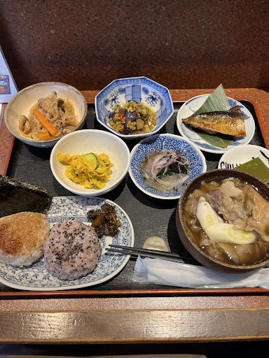 Read more豚のしょうが焼き定食いただきました。 とにかく味が濃くて、午後一杯消化に費やしました。 とても美味しい分厚いロースをふんだんに使ったしょうが焼きなのですが、しょうがの香りはあまりなく、ホイコウロウのような甘辛い味付け、加えて付け合せの昆布の煮付けや漬物も塩辛め、とても美味しく炊けたご飯で何とか食べ進めるも、極めつけは大きめに切られた茄子やじゃがいもが入ったお味噌汁に油が浮いていて、豚汁?と思いきや、クジラの脂身が具に入っていて、強い味付けと相まって、慣れないと食べきるのが難しい。 評判やお店の雰囲気はとても良いし、店員さんも気さくで麹とか売りのようなのでヘルシーなランチを期待していましたが、図らずもチートなお昼になりました。 がっ...