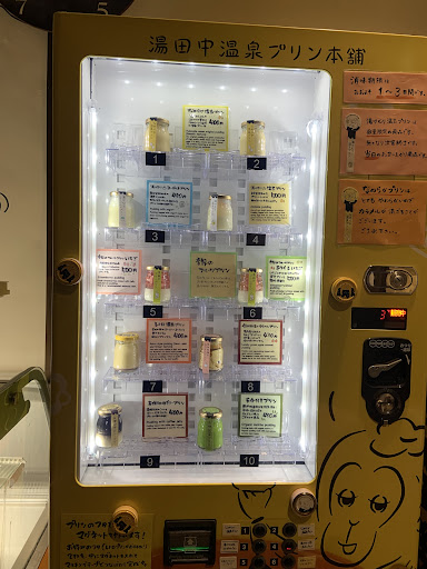 Delicious pudding! They use cage free eggs and it gives a very smooth mouthfeel. The onsen egg original flavour is the best for the creamy pure egg taste. The matcha is also very delicious. Their apple one is very light, featuring the local apples. We also tried the retro pudding which has a firmer texture with caramel sauce at the bottom. All very delicious! You can pick them individually from the vending machine for various prices between 400-450JPY, or get a bundle of three from the display case for 1100JPY (paid by the...