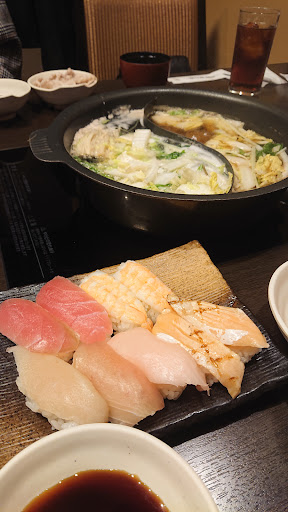 今回も前もって予約して個室を利用しました。 鍋の形は予約時に伝えてあったので出汁1種類用の物が用意されてましたが、お鮨で使う醤油皿が無かったので口頭で伝えて持って来て貰いました。 何も伝えて無くても準備してくれてる日もあるので、その日は常連のデータを知ってる人が準備してるとかなのかな? 一通り料理を楽しんだ後に会員特典の小菓子セットを店員さんに頼んだら、今はお盆期間だから会員特典を受付けて無いと断られてしまった!でも通常のデザートに小菓子セットにも使う抹茶ティラミスやわらび餅が載ってて注文出来るので変だなと思いもう一回確認したらすんなり会員特典の小菓子セットを注文出来た・・・大学生くらいの長めのウェーブパーマの髪型の男の店員さんだったが最後迄一言も謝らなかった❗️ 常連だからバイトの人のミスに気付けたが、初めて使うお客さんだったら店員さんの言いなりで気付けなかったと思います。楽しかった食事が少し嫌な終わり方をした日でした。