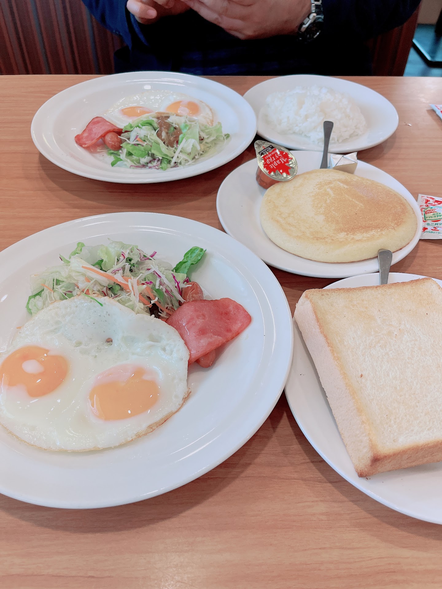 プラス税込200円でパンケーキも食べられます。リーズナブルだけど甘くておいしい。メープルシロップは持ち帰りました。