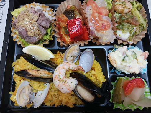 Read moreパエリアの弁当をネットで注文。いきなり行ってもほとんど弁当も惣菜も無いので予約必須です。 パエリアはもっちり炊いてあるタイプで、しっかり炒めてパリッとしたのが好きな方向きでは無いです。 ご飯の量が少なめですが、おかずがそれぞれ量が多く満腹になりました。 よって、少ないおかずでバクバク白飯を食べるような弁当ではなく、おかずメインの為、値段はそれなりに高いです。 味は文句無しにとても美味しいので、知人友人に出して恥ずかしくないクオリティだと思います。 ネット注文もチラシも料理の写真が、画質か大きさの問題なのか、今一つ詳細部分の要領を得ない所があるので、その...