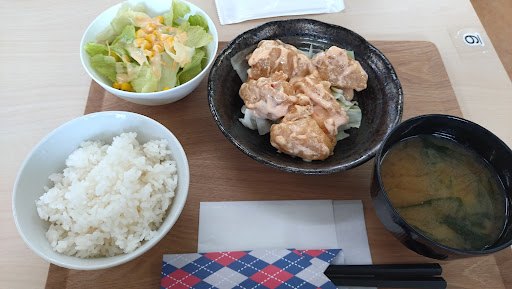 ベースは冷食系かなと言う鶏のから揚げ。そこにマヨでチキン南蛮風になるかと思いきややはり感じはエビマヨ風。値段なりですが、悪くはないですね。お手頃価格で外食済ませたい時は良いかと。