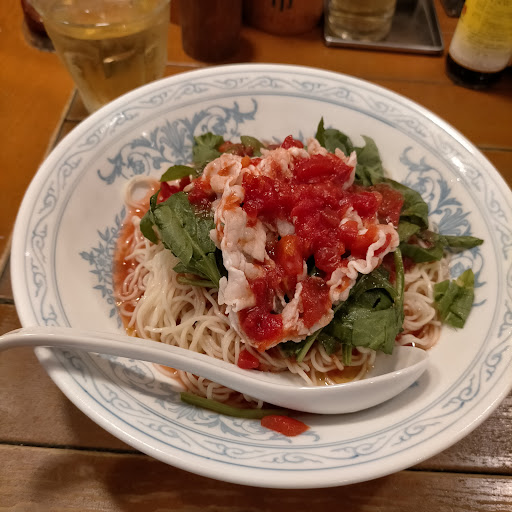 2023/06/05 今年も夏限定冷やしトマト冷麺食べにきました。 初めて日付変更後に行ってきました。 何か接客微妙でしたが目的の冷やしトマト冷麺は去年より美味しく感じました。 初めて食べた年ほどじゃなかったですが。 今年は何回か食べに来ようかなぁ 今回は冷やしトマト冷麺きてすぐに餃子きました。 でもパリパリではなかった。餃子の王将の焼き加減良い時のが好みかなーぐらいでした。 後はジャスミン茶ピッチャー置いてくれんかったし注ぎにきてくれんかったなぁって思ったぐらいでまぁ、毎回気持ちよく食べさせてはくれないなと思いました。 会計時に あ、ジャスミン茶おかわり欲しかったですと言ってみたら ありがとうございますって返ってきましたの...