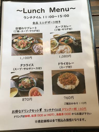 Read more初めて伺いました。 ねこちゃんの雑貨が所々にありねこちゃん好きなのでそれだけでもいい雰囲気。 日替わりランチを頂きました。 彩りの良い見た目、柔らかい鶏肉のお料理は味付けも私好みでご飯が足りなくなりそうでした。(大盛りライス対応あり) デザートのヨーグルトがありましたので食後もさっぱりと美味しく頂きました。