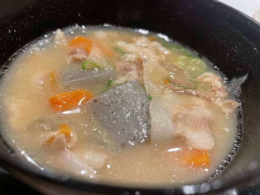 2021年2月14日(日)~ 豚汁定食715円 かつがサクサクして美味しかったです。