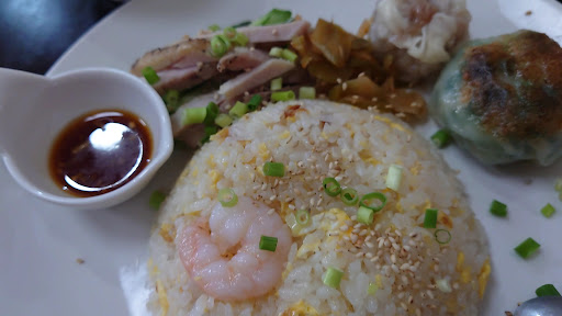 で、チャーハン気分だった&チャーハンだけでも寂しいなとか思って入店したら、週替りがちようどそんな感じだったのでそれに。チャーハンと点心のワンプレートランチ=1000円で大盛は無料サービス。