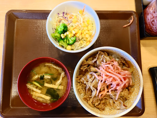 Read more2024/12/26 13:20頃 再訪 晴れ ■牛丼並+味噌汁サラダ=600円 ▲クレジットカード払い(タッチOK) 注文は座席のタッチパネルで 仕事が立て込んでて昼をとっくに過ぎてようやく昼食時間とれたのでラーメンでも食べようかとふらふら歩いてたのですが、なんとなくこちらに入りました。 中に入ると客は疎らで待たずに座れました。 店内はカウンター席とテーブル席があり、家族連れでも大丈夫そうです。 とりあえずすぐに出るであろう牛丼を頼んで待っていたらすぐに対応して欲しいと仕事先から連絡がきてしまい、「30分以内で戻る」と返してるうちに提供されました。早いです。 慌ててかきこむように食べましたので正直あんまり味は覚えていないのですが、汁が多めで嬉しかったです。次回は堪能したいものです。師走です...