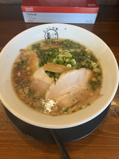 ラーメンは、メニュー等を見ると、とんこつスープをメインに推しているのですが、この店の本来のラーメンは、現代の豚骨と言えば、背脂マシマシのドロドロこってりラーメンというのとはかけ離れいて、鶏や魚介スープの代わりに、軽めのとんこつスープを使ったようなアッサリ醤油ラーメンです。 強火で大量の豚骨を長時間煮詰めたような豚骨スープではありません。 なので、ドロドロ豚骨ラーメンを望んで居られる方は、拍子抜けすると思います。 が、反対に豚骨ラーメンに飽きている方や、ラーメンをスッキリとアッサリ楽しみたい女性の方には良い選択だと思います。 トッピングのチャーシューやシナチクも美味しく、完成度は高いです。 中華そば系でも無く、普通の豚骨ラーメン系でも無く、他ではあまり食べた事の無い味です。