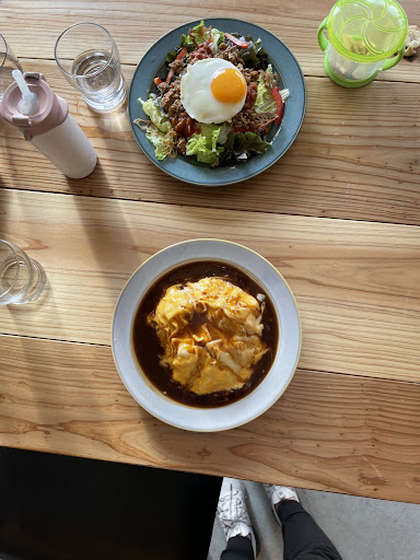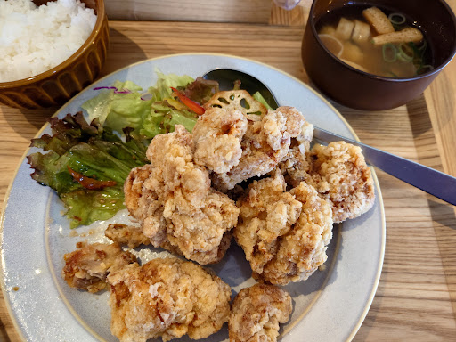 2歳前の娘と、友達とランチに来ました! オススメのオムライスも、ハンバーグも唐揚げもどれも美味しそうなメニューばかり。 私は唐揚げランチ(5個か7個か選べます)7個入りにしました。 (食べ残った場合は無料でパックに入れてくれます。) 友達はハンバーグ乗せオムライス。 唐揚げは揚げたてあつあつで衣はザックザク!もも肉ですごくジューシーでした。 サラダも新鮮で美味しく、ドレッシングもとても好みで美味しかったです(イタリアンかな?玉ねぎドレかな?) ドリンクやデザートはセットではありませんが、ランチが1000円ほどで食べられるのでとってもお得です! 店内の席は10名ほどでこじんまりとしていますが、カウンターもありおひとり様でも来やすいお店です。BGMが流れていて雰囲気もいいし、店員さんも丁寧です。 帰り、レジで娘に駄菓子をいただきとても喜んでいました。 ありがとうございました。