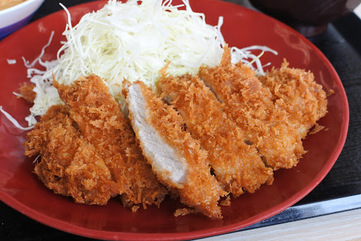 ◆ロースカツ定食(120g) 税込 792円 安いのでシンプルな定食です。 ロースカツの他はキャベツの千切り、豚汁、ご飯、そして卓上の漬物は食べ放題。 身体のために最初にキャベツを食べてから豚カツを頂きます。 肉は意外にも柔らかくてストレスを感じない。 衣はサクサク!とまでは言えないけど普通に悪くない衣で、パン粉も立ってる。 ソースもこれと言って特徴は無いものの、普通に美味しい。 変わり映えなく単調だけど、食べ放題の漬物が救ってくれる感じ。 豚汁を含め全体的に普通に美味しかった。