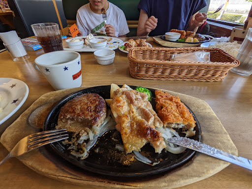 大和郡山環状線と国道25号線の交差点に有るチェーン店。駐車場へは2方面から進入出来るので便利。駐車場は60台近く駐車出来る広さで大きい。訪問した時は平日のお昼だったので近隣の作業員やサラリーマンの人達で、ほぼ満席状態。店員さんは忙しい中気持ち良く応対してくれて、席に案内してくれた。メニューは¥1000以下のランチメニューから¥2000円近い本格的なステーキ定食迄種類も豊富で色々選べる。店名はステーキだけどハンバーグやエビフライ等もメニューに有って、デザートやスイーツもあるので一般的なファミレスと遜色ない。当日は角切り落としステーキを注文120gを頼んだけど、ごはんやスープのおかわりが自由なので個人的には、お腹一杯になった。混んでいても食事の提供時間も長く待たされることも無く、ごはんのおかわりもすぐ持ってきてくれたりして、接客は全く問題なく気持ち良かった。一言あるのはおかわり自由なスープバーで、カウンター周りにスープの飛沫が気になったのと、スープを入れるお玉が手袋無しで使いまわしなのが衛生的に少し気になったかな~。...