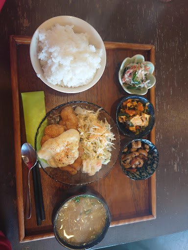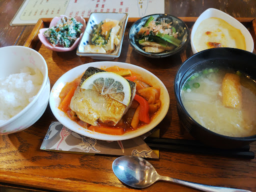 Read more道路沿いにある小さなカフェ屋さん。 気になっていたけれど、車では行けないのかなと思っていたら お店裏に駐車場があってとても入りやすかったです。お店中はテーブル席4席。あとカウンター席ありでした。 なんだか懐かしいようなお店の雰囲気に、気さくなオーナーのおじさんでした。 ランチは、3種類からメインが選べて、小鉢ものがひとつひとつ丁寧なお味で美味しかったです。食後のコーヒーもついていてとてもお得なランチでした。居心地も良かったです。 少し空調は私には寒く感じたのですが、きっと言えばすぐ調整してくれたと思います。また他のランチセットも種類たくさんあり食べたいなーと思いました。 モ...
