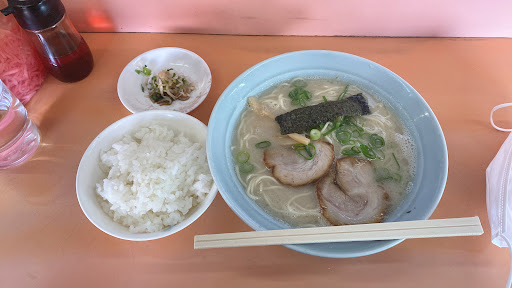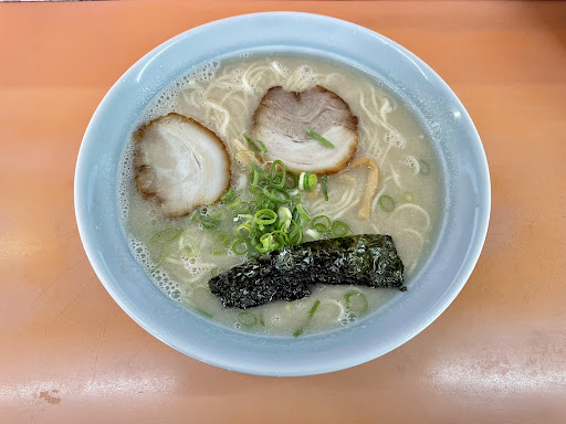 八女市本村、国道3号線沿いにあるパチンコ屋「テンガイ」八女店横にあるラーメン屋です。かなり年季の入った店舗で、カウンター席と小上がり席で構成されています。駐車場は専用かどうかは分かりませんが、パチンコ屋には広大なスペースが用意されています。さて「ラーメン」ですが、程よい甘みと塩味が感じられるとんこつスープで、久留米系と佐賀系の中間的な味わいとなっています。麺は中細ストレートで、具はチャーシュー、ネギ、海苔、シナチクといった構成となっています。大盛り対応あり、替え玉制なし、各種トッピング対応ありとなっています。味のバランスはとても良いと思いますが、本店の味とは結構異なるようなのでお好みでどうぞ。その他のメニューは、トッピング違いのラーメンをはじめ、「ギョーザ」や「ホルモン」「おでん」等が置いてあります。焼き飯系やセットメニュー等はありません。 因みに「ゆめタウン八女」のすぐ近くに本店がありますが、こちらのお店はパチンコ屋横という立地からか、客層は自然とパチンコ客が多くなっているようです。パチンコで疲れたおいちゃん達が羽根を休めにやって来るお店なのでし...