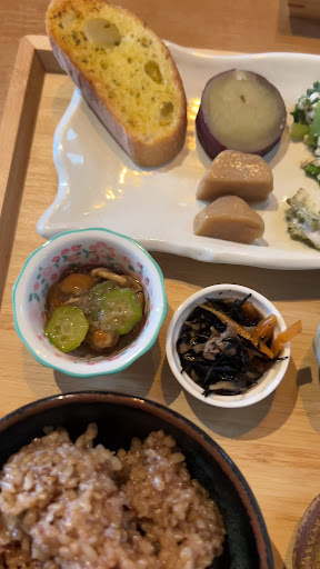 Read more星野村のシャクナゲ園の帰りに初めて寄らせて頂きました。アットホームな、おしゃれな店内でした✨ 娘は発酵酵素玄米付きのハンバーグプレートを私は、ベーコングラタンとガーリックのバケット頂きました。 ご飯はモチモチでハンバーグは、デミソースで、小鉢もみんな美味しかったそうです。グラタンは小さめでしたが、バケット2個付けて丁度良かったです。とっても楽しかったです😋 次回はワッフ...