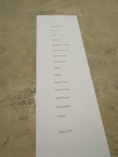 おまかせコース ■ラディッシュ ■人参 カレー ■さつまいも ■とうもろこし コンソメ ■茄子 トマト ■大根 アニス ■鮪 ビーツ ■豚 バター ■日向鳥 九重ポーク ■マナガツオ 海苔 ■和牛 ふき ■春菊 ■ルビーレッド ■焼き菓子 ■スペシャルティコーヒー