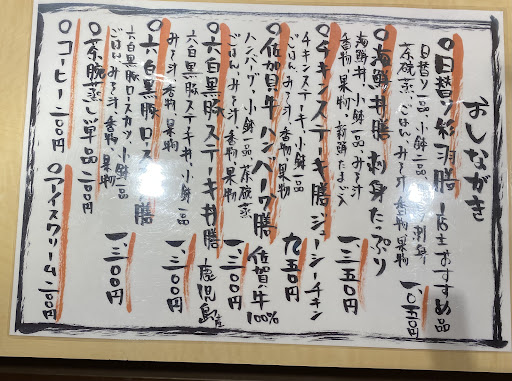 日替わりメニューは日によって肉or魚 肉はまだ食べたことないですが魚は煮付けに当たりましたよ(^ ^)ボリューム満点でオススメです。