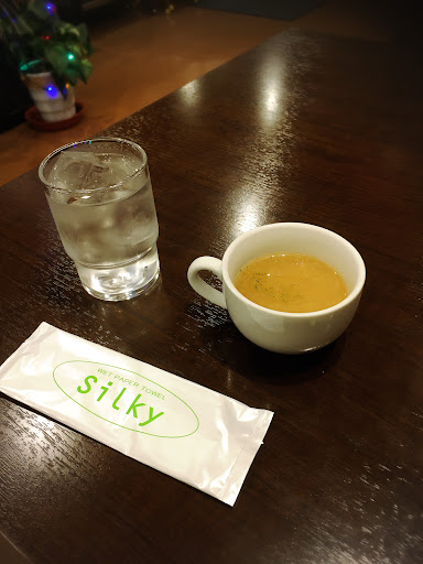 そのまま注文を終え、すぐに出来るので席に座って待つよう促され、待っていたら、テイクアウトでの注文だったのに、スープとお冷やが運ばれてきてびっくりしました!😲 サービスだったんですね😳✨ 優しい野菜の入った美味しいスープを飲み干し、おかげさまで心も体もあったまりました☺️💕