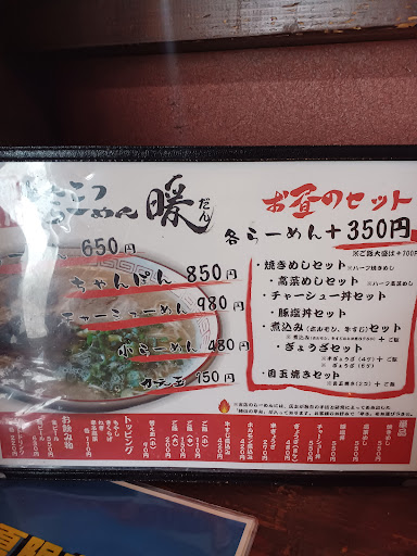 Read more温泉に行く途中で立ち寄りました ラーメン600円と焼きめしセットで+250円ぐらいだったかな この辺にしてはラーメンは高いかな 安い店は家族経営とかが多いので若い人でやってるから こんなものでしょう。接客はとてもgoodでした ラーメンは久留米系が好きなので博多系っぽいラーメンなので 2回目はないかな(味自体は美味しいと思う) 焼きめしは結構うまかったです