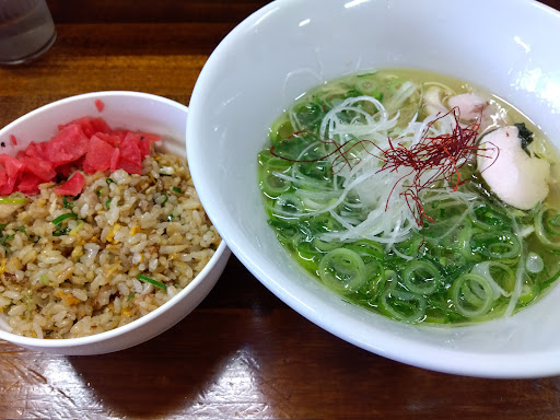しろラーメンとやきめし小を注文、5分後に提供。しろはコクがあるスープにしっかり食感のある麺が絡んで、とっても美味しい🤤チャーシュー代わりの鶏ハムがあっさりしててスープに合ってて、ネギは刻みと白髪の二種類乗っててネギ好きにはたまりません。山口県は塩ラーメンのお店が少なく、県内では1番美味しい塩ラーメンだと思います。