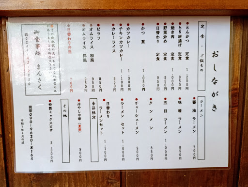 西山温泉近くは、たびたび撮影の仕事でも行く機会が多く、砂子原の集落内に気になる食堂があった。 まんさく食堂という看板は見えるのだが、シャッターが閉ざされた外観。しかしよく見ると「営業中」の札が下げられている。 「ああ、どんな食堂なのかなぁ」 と、通るたびに色々な妄想が掻き立てられた。 こういう山間の集落にポツンとある食堂には、実はいいお店が多いという経験則の元、入り口の戸を開ける。 開けるとすぐにお店の中かと思ったら、目の前に急な階段があり、それを登った2階がお店だった。