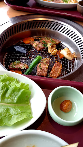 Read more入り口で靴を脱いで上がり、窓際のところに案内され座りました。 日焼けしそうなので通路側に寄りました。 焼き肉焼いても肌焼くな!って感じ😓