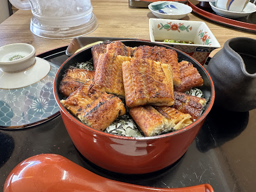 あくまで私見です。 この高評価本当に大丈夫なのかと感じる。 勿論好みは人それぞれなのも理解している。 しかしこれほどの高評価と現実の乖離には驚いた! 土曜12時30分入店するも満席を覚悟していたが一組だけ! これで嫌な予感が大きくなる。 まずお母さん?年配の女性の接客は非常に丁寧で期待できた。 続いて店主らしき男性が無料サービスですと青物系の突き出しを能書きと共に出される。確かに手がかけられているとは思うが、なにより生臭い。青物系魚特有の匂いを消す術をご存知ないようだ。 そして注文から5分程度でひつまぶしセットが提供される。 あまりの速さに驚きながら一口目。。。 焼き立ての香ばしさが全く感じられず、身はフワっとではなく柔らかいだけ! 店内のそこかしこに貼られている一般人による絶賛の色紙を見ながら言葉を失う。 申し訳ないが半分程度しか食べることが出来ず、女性に調理方法を確認すると、店主が出てきてあらかじめ蒸した鰻を注文を受ける度に高火力バーナーで炙って提供すると説明する。 しかし炙りたて感が0だと言うと、焦げめがつくとクレームを受けるのであっさり炙っているとの事。 次に来店されたときに強めに炙って欲しいと言って下さいって!! いやいや二度と来ないよ