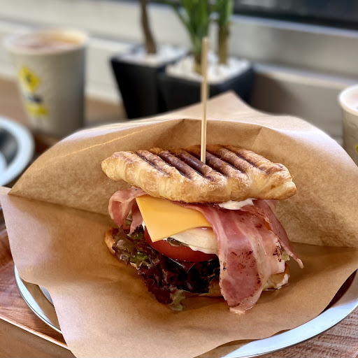 ハムチーズエッグも美味しかったです! ビジュめっちゃ良いし程よく塩気のあるチーズがたっぷりで凄かった… クロワッサンは甘みの少ないタイプです! カフェラテもほろ苦くて美味しい〜! (LINE登録のキャンペーンで1杯頂けました、ご馳走さまです!)