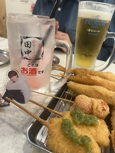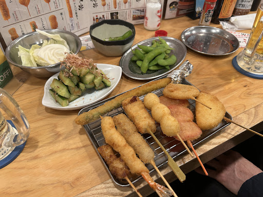 Read more店員さんは丁寧でしたが、個人的には訳のわからないおにぎりなど子供騙しなメニューでシンプルに食べたいものがなかった。 串カツの具は大きいけど、ソースが致命的。ドボンじゃなくて味もコクもない。なのに串カツ頼みすぎて後悔。ボトルの醤油も微妙でした。 肉吸いは味がなくて肉水的な。 帰り道に心満たされず高くない?とレシートを探してみた。 お通し代??何か出てきた??何も出なかったよね?って!!もしや、お代わりできますんで〜って置いて行ったキャベツの事ですか?ドボンでもないソースで不味そうなキャベツは食べれないよ〜!!! 1人330円?2人660!3人990!4人は1320円…。