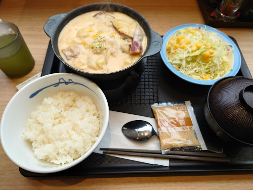 Read more改装してから初めて訪れました。入口で食券を購入し、出来上がったら番号を呼ばれるので取りに行き、食べ終わったら食器を返しに行くスタイルです。入店から退店まで店員さんとの接触は料理の受け渡し時に食券を渡すのみとなってます。 布巾は受渡し口にありますので、テーブルの汚れが気になる方は取りに行ってください。私は気づかなかったのでテーブルの紙ナプキンで拭きました。 今回注文したのは、期間限定の「シュクメルリ鍋定食」にしました。具材は鶏肉・タマネギ・さつまいもで、見た目はクリームシチューに似てますが、ガーリックの風味とチーズの塩味がしっかり効いていて、ご飯に...