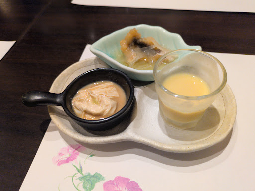 お客さん、同僚と一緒に訪問しました。料理がどれも美味しかったです。もう時期旬も過ぎるので、どうしても鮎と鱧食べたかったので、お店を予約する際に、鮎料理のお願いをしたところ、四万十川の天然鮎を準備していただくことになりました。予算や料理の相談にものっていただけたのるので、次回訪問時は前もって料理の内容を決めておきたいと思います。それとお造りは熟成された食材でしょうか、魚に旨味がありますね。お造りにはちゃんと鱧も入ってました。あと、水茄子の天ぷら初めて食べましたが、食感が良いです。ちゃんと水茄子を感じる良い揚げ具合でした。蓮根の天ぷらも普段口にする蓮根の天ぷらではないですね。食感も味もちょっと他では食べられないと思います。お酒の種類も豊富で、翌日仕事でなかったら、日本酒いきたいところでした。ちなみに前菜のスープはちょっとあなどれないです。出汁がきいてて、同僚がこれだけでお酒が飲めると言ってました。締めのラーメンも有名らしいので、今度は冬の旬の...