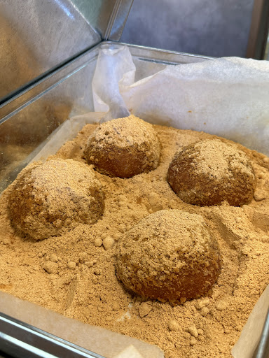 写真の一枚目は、 きな粉餡とお餅が中に入った揚げパン❣️ きなこが揚げパンにふんだんにかかっていて、 めちゃくちゃ美味しそうでしょ🥰 食べる前に温めて、お餅の食感も楽しめるんです😋