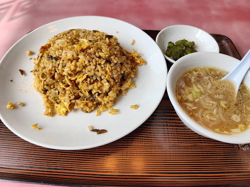 Read more初訪問。仕事を済ませ1時過ぎの入店。店員のおばちゃんに挨拶なしで水を置かれました。まぁ、それは良しとしましょう笑 ドラゴンチャーハンを頼みました。 これがメニューの見方がやや紛らわしく、+200円でラーメンセットに出来るように見えたのでそれをお願いすると…それはメニュー下の生姜焼き定食のみだそう。あらら💦 仕方なく単品でドラゴンチャーハンを頼みました。ボリューミーだとレビューにあったのですが、普通盛りは普通でした。肝心のチャーハンはピリ辛というか、辛いもの好きですが、そこそこ辛かったです。 でも、味はまずまずといったところ。普通なら、ま、いっか!となるんですが、どうもおばちゃんの接客とメニューの件が引っ掛かってしまい、貴重な外...