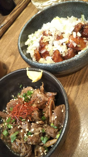 串焼き屋です。地元の人気店のようで、いつも混んでるそうです。予約して行きました。このお店、料理の量はやや少な目。一品の量が多い店では2〜3品注文するとお腹いっぱいになりがちですが、こちらでは多種の料理を味わえます。串焼きは専門店だけあってどれも美味しく、前半は濃厚な「タレ」、後半はあっさり「塩」で楽しみました。また肉刺しなどの生肉メニューがあって「鳥のユッケ」は特に美味しかったです。お腹を満たすなら鍋料理が良いかも。注文は2人前以上から。鍋のあとのちゃんぽん麺は甘さを感じる麺で美味。2人前の鍋に対して麺は1人分がちょうどよい感じでした。お店オススメの「もつ煮込み」は美味しいのですが量が少なすぎてちょっと残念。店員さんの対応は非常によく、最後ま...