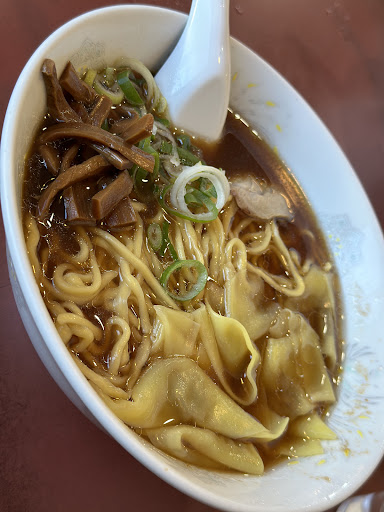 Read more2024.12.28土曜日 近所にある珍来が美味しかったので インスタなどに投稿されている総本店直営とはどんなものかと開店30分前から訪問してみました。 駐車場は広めですが開店直後ともなると ほぼほぼ車で埋まってる感じでした。 ちなみにこのお店はトイレが外にあるため必要に応じて一旦外に出るようになります。 注文したのは ◎ワンタン麺 ¥900 ◎チャーシュー麺 ¥900 ◎餃子 ¥390 ◎ニンニクチャーハン ¥850 まず最初に着丼したのはワンタン麺。 ご覧の通り 到着直後にも関わらず 湯気が出てません。ぬるい訳ではありませんが熱々ではなく よってフーフーする事なく食べる感じでした。 丼に盛られてから客席に届くまで タイムラグがあったのか 或いは丼も温めず沸騰もさせてないスープに麺を流し込んだか いずれにしてもこれはラーメンにとって致命的です。 当然上にのったワンタンも喉越しどころか なんの味わいもなくチャーシューに至ってはカップラーメンに入ってそうな薄い加工品のようなものでした。 チャーシュー麺などこの加工品のようなものが数枚のってるだけの貧相な仕上がりです。 そうこうして驚きを隠せないでいると 餃子が届きました。 これも画像を見てわかる通り 全然熱々じゃありません。焼きが甘過ぎです。 外はパリッと中はジューシーな餃子の醍醐味など微塵も感じませんでした。 色々我慢しながら食を進め 到着したものが終わる頃になってようやくニンニクチャーハンが到着です。 これもお店の方に忘れて無い事を確認してから届いた始末。 このチャーハンもニンニクの香りこそしましたが まるで味が薄く 味付けを忘れているのでは?と疑問を感じながら頂きました。 正直言って近所の珍来とは天と地ほどの差を感じました。 わざわざ足を運んでこれだけの金額を払い...
