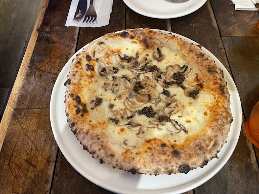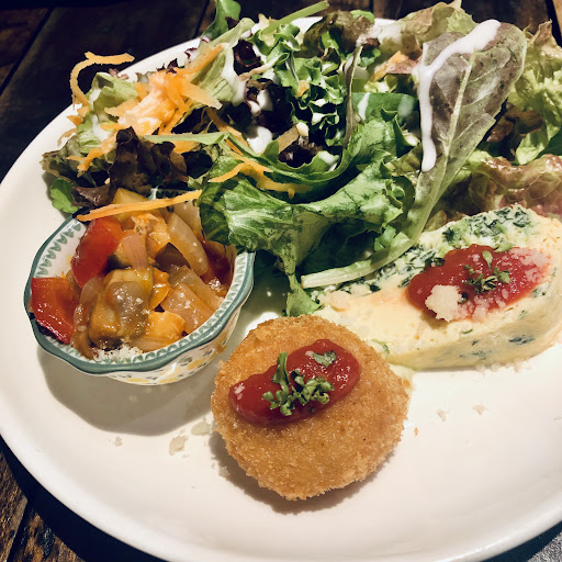 約1年ぶりの再訪となった今回は、ランチのBコースを選択。本日のピザの中からポッロ(鶏ミンチと茄子)とトリュフ(マッシュルームとトリュフオイル)単品でベーコン、アスパラ、ズッキーニのトマトパスタをチョイスして、相棒とシェア。結果として◎、星⭐️五つプラスAの満足度でした。いや、本当に美味しかったー。特筆は三種類の前菜にあったライスコロッケ!次回は単品で注文しようと思ったくらい。
