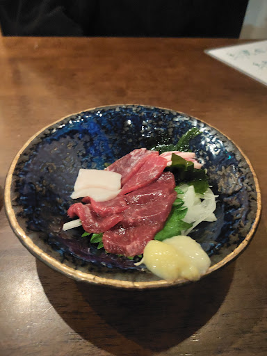 お店のメニューは 驚き驚き‼️ 牛肉と鶏肉はどこのお店もありますが なんと馬肉のお刺身が食べれる‼️ こんなお店を近くで探していました🤤 バリエーションも豊富で どれもこれも食べてみたくなる そんなラインナップ✨ なみなみワインも泡も含まれており これには値段も合わせて大満足🤤