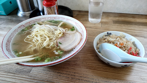 Read more駐車場もまあまあ広いので繁盛期でなければ停めれそう。カウンターのみでオープンキッチン。年配の方4名でやっているので手際が良く愛想も最高です。チャーハンと半ラーメンと餃子を注文しました。ラーメンは工夫が無いですがこれぐらいがいいいのかも。チャーハンは美味しかったです。餃子は中にキャベツが入っていて適度な大きさで美味しかったですが酢胡椒が好きな私としてはタレが決め打ちされているので幅を広げて欲しいです。気になったのは灰皿が置いてある事。案の定、後から入った隣の人がプカプカ。禁煙にしても誰も怒りませんよ。ご馳...