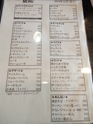 Read more自宅から車で5分。島根県安来市の中でも老舗の喫茶店さんで、地域の人からも長く愛されているお店さんです。 定期的に行きたくなるんです。 メニュー豊富です!この日はサーロインセットでした。気取らずホッとする空間で、カラクリ時計が時代を刻んでいて、またいい感じですよ。 日替わりランチもオススメ、鉄板のナ...