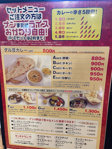 I went for the honey naan. For an extra 380 yen, I could change to honey naan. Total price: 1,260 yen. As I expected, it was very tasty! The mood and service of the restaurant...