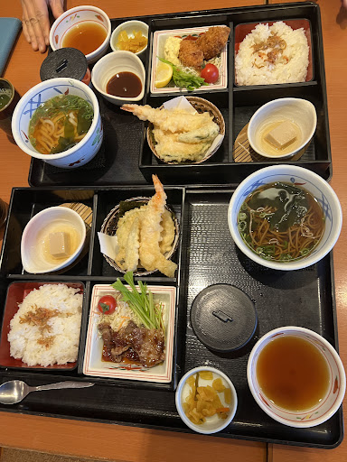 Read more大海老天ざる蕎麦/うどん(税込み1208円) はお値段そのまま麺を3倍盛りにできます。 蕎麦/うどんはツルツルとまるで飲み物のようにどんどん口に入り、合い間に大海老天を食べると… サクッとぷりっとう~~ん旨し。