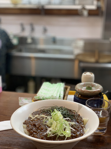 Read more八代でランチを探して、口コミを見ていくと評価が高くて刀削麺との事だったので早速行って見ることに。 一瞬、普通の民家かな?と間違う外見に躊躇しながら来店。 カウンターに座り、メニューを見ると、夏季限定で冷やし刀削麺があるとの事。 本来は、王道のスープ刀削麺を頂くのですが、午後からの仕事を考慮して汗をかきたくなかったので、冷やし刀削麺1000円をオーダー、先客の丼と写真の内容から、少ないかな?と思い、大盛り200円をお願いすると、2玉入りますが?と言われましたが、丼に入る程度なら大丈夫と思い、了承致しました。 麺を削って釜の中へ入れているのを眼前で見れて最高です。 しばらくして着丼したのですが、その丼の大きさと麺の量に、何かの間違いでは?と怖くなりました。 とにかく食べて見る事に。 まずは、スープですが、サンラータンのような酸っぱさと辛さがあり、冷たいので更に清涼感を増して、美味しいです。 麺は、大きさが不揃いで、全部の麺に火が入ってるか心配でしたが、ツルツルモチモチで大変美味しいです。 ただ、お箸を立てると倒れない位に麺があり、なかなか減らない(笑) 御主人が心配して食べれますか?と聞いて来られましたが、食べきれないですと伝えると無理しなくていいですよと優しいお言葉をくれました。 今まで、500g程度の麺は、完食していたのですが、残した量は、6割程度なので、恐らく800〜1000グラムはあったと思います。 しかし、デザートで出たプリンはお腹に入りました。 紅茶シロップが最高に美味しかったです。 お会計をし、御主人に深くお詫びを申し上げました。 御主人がお話してくれたのですが、普通サイズの麺もサービスで増量しているので、多いとの事。 また、このメガ盛りの刀削麺を3分で完食した女性がいるとの事で、その後全メニューを食べて帰ったそうです(笑) お店にご迷惑を掛けないように、2キロ完食出来るレベルの人以外は、大盛り注文を控えて下さい(笑) 大変美味しかったです...