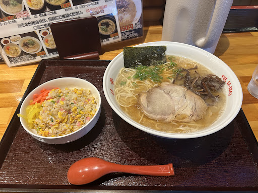 Read more店内は綺麗で広く、店員さんは親切 料理は豚骨ラーメン、チャーハン、餃子セットに味玉とピリ辛タレをトッピング、とミニラーメン、おにぎり、餃子セットを注文 豚骨ラーメンは麺は柔め、味は普通、ピリ辛タレ入れない方がおいしいかも! ピリ辛タレで豚骨の味が消える、味玉はトッピングすべき!おいしい! チャーハンの量が多いのでミニにすればよかったが、おいしかったので完食! 餃子も具は少なめだが、味はうまい! ミニミニセットも少食の嫁が限界まで食べてちょっと残す量 次は違うラーメンを頼んでみたい なんと言っても、テーブル一つ一つに水のポットが置いてあるのがいい! セットメニューも充実してるので、お好みの品が見つけやすい! 子供用のメ...