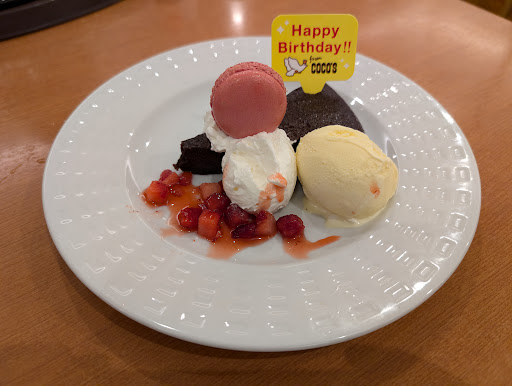 ○前書き 向いのムサシ京都八幡店に出入りするようになって、数年になりますけど(その頃はまだ「第二京阪道路」のICは未完成でした)。 しかし、このCOCO'Sには、立ち寄らずにいました。偶々今回は、お昼前に買い物が済んだので、昼食に訪れました。 ○立地 表の通りから、奥まったところにあって、Costcoに来る人も気がつかないと思います。 ○ビーフハンバーグステーキランチ 私たち夫婦は、COCO'Sに来る時には、定番名物料理の「100%ビーフハンバーグステーキランチ」を注文することにしています。 この日も、9月のメニューのセットを無視して、「ビーフハンバーグステーキランチ」を注文したわけです。 お店の看板料理だと見えて、テーブルには「ビーフハンバーグステーキの食べ方」なるPOPが立っていました。 ビーフステーキにしても良い牛肉をミンチにして、玉ねぎやパン粉を用いない生肉の「牛肉100%ハンバーグ」ですので、しっかりと中まで火を入れないと病原性大腸菌O-157に感染してたいへんなことになります。そのための注意書きなのです。 でも、それ以上に「美味しい😋🍴💕」のです。 しっかりと加熱用ペレットで焼いて食べるのです。ペレットが冷めると交換もできます。 熱々のハンバーグステーキが旨いのに安い! あのハンバーグレストランチェーンの木皿のワンプレートで出てくる生ぬるい安物ハンバーグ(たぶんレトルトの湯煎)とはわけが違います。 ○店内 昼時の店内には、女性ばかりいました。子供連れも中にはいたのですけど、大半は数人の女性グループです。すぐ近くの私立幼稚園ヘ送り届けたあとに、母親たちが集っているのでしょう。大きな声でしゃべっています。毎日千数百円の出費ができる、高所得者の奥様方なのでしょう。 このお店の周辺には、事業所が見当たりません。ですから、そんな想像をしてしまいました。 男性は私とバイト...
