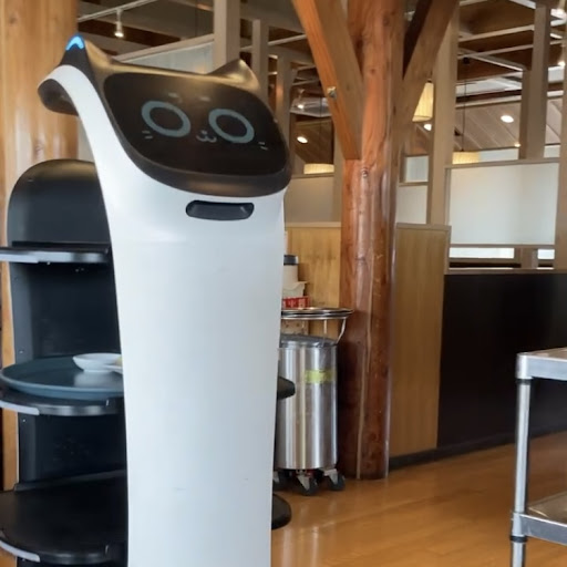土曜日ランチタイム。 ホームページでロボットが来る席と来ない席があると調べ済み🙋♀️ 受付で「ロボットが来る席が良いのですが〜」と言うと、スタッフさん同士で「5番の席がいいんじゃない?」と真剣に考えて、案内して下さいました✨